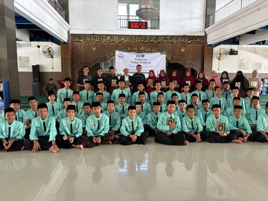 Minggu pagi, 25 April 2026, bertempat di interior Masjid Jami’ Ummul Quro Al-Islami, telah diselenggarakan Wakaful Qur’anul Karim dari tim Wakaf Al-Qur’an Pustaka Al-Fatih kepada santri dan santriwati Pesantren Modern Ummul Quro Al-Islami sebanyak 560 buah Al-Qur’an baru siap baca.