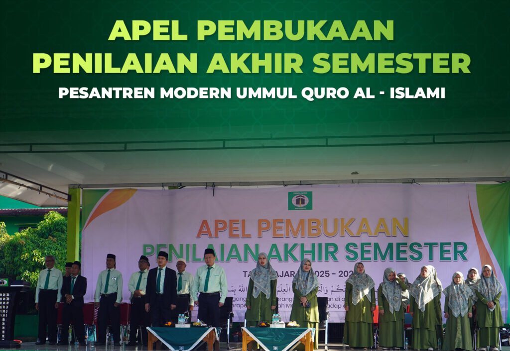 PMUQI — Para santri dan santriwati Pondok Pesantren Ummul Quro Al-Islami beserta jajaran asatidz, ustadzat serta pengurus pesantren turut menghadiri Apel Pembukaan Penilaian Akhir Semester yang digelar pada Senin, (01/12/2025).