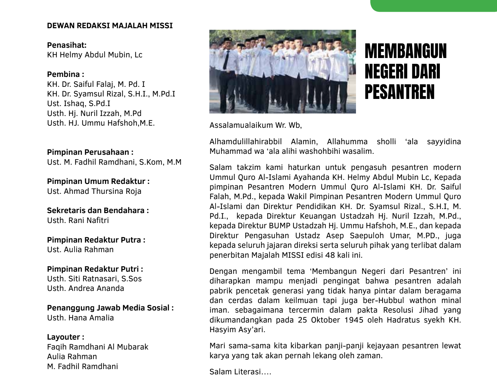Majalah MISSI adalah komunitas literasi Pesantren Modern Ummul Quro Al-Islami